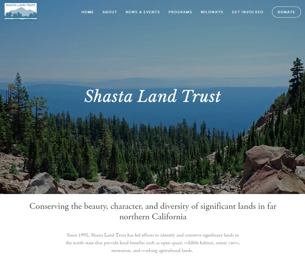 We launched a brand new website. Check it out at shastalandtrust.org. We've made it easy to donate online and added monthly giving options. Be sure to check out our blog, purchase tickets to upcoming Wildways events, sign up for eNews, and keep updated on the latest news and happenings.